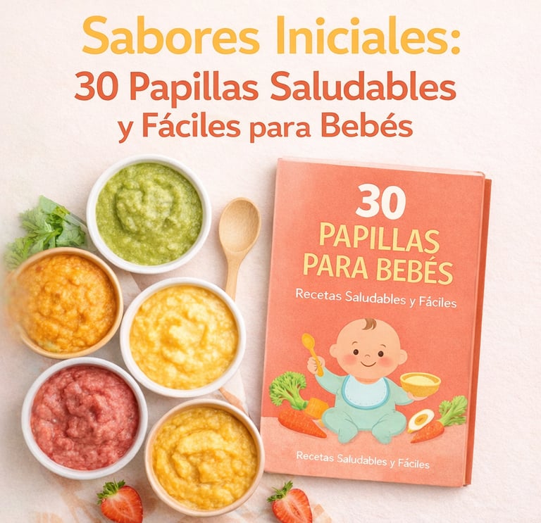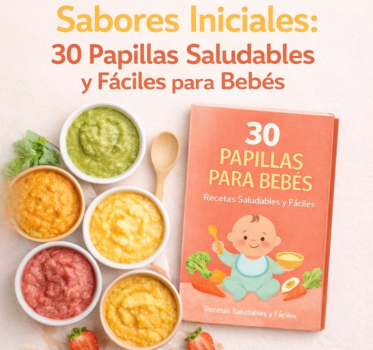 Este eBook incluye 30 recetas de papillas para bebés, cuidadosamente elaboradas para ofrecer una alimentación saludable, equilibrada y natural desde los primeros meses